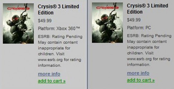 At a time that everyone's attention is focused on Max Payne 3 and Diablo III, popped a leak now in the digital shop of EA, where Crysis 3 Limited Edition for Xbox 360 and PC is posted , at a price of $ 49.99.